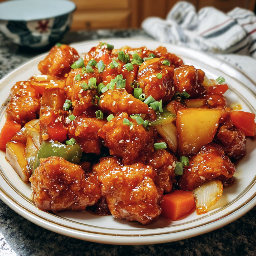 - Serve It Up: Now it’s time to enjoy! Transfer your Sweet and Sour Chicken to a serving plate. Don’t forget to sprinkle some chopped green onions on top if you like. Serve it hot over a bed of rice or noodles!