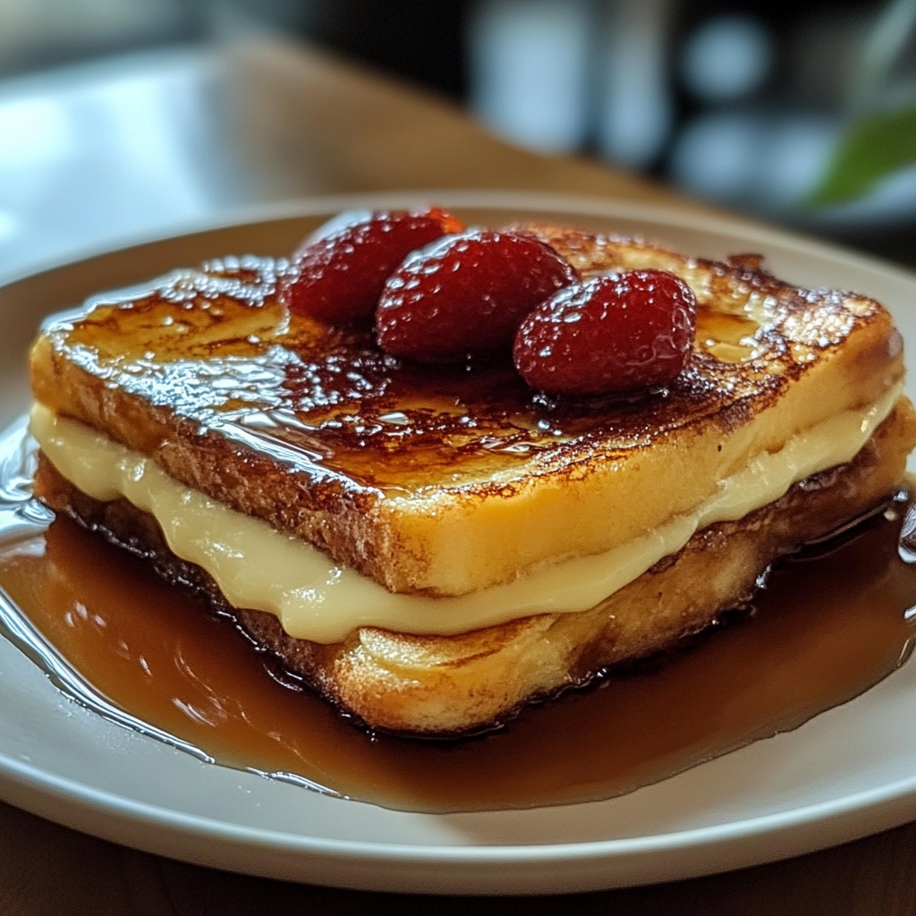 - Garnish and Serve: Now it’s time to get fancy! Top your brûléed French toast with fresh strawberries or raspberries, and don’t forget a drizzle of maple syrup for that sweet finish.