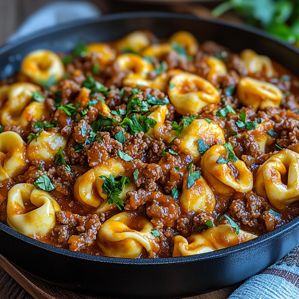 Easy Cheesy Beef Enchilada Tortellini Skillet Recipe
