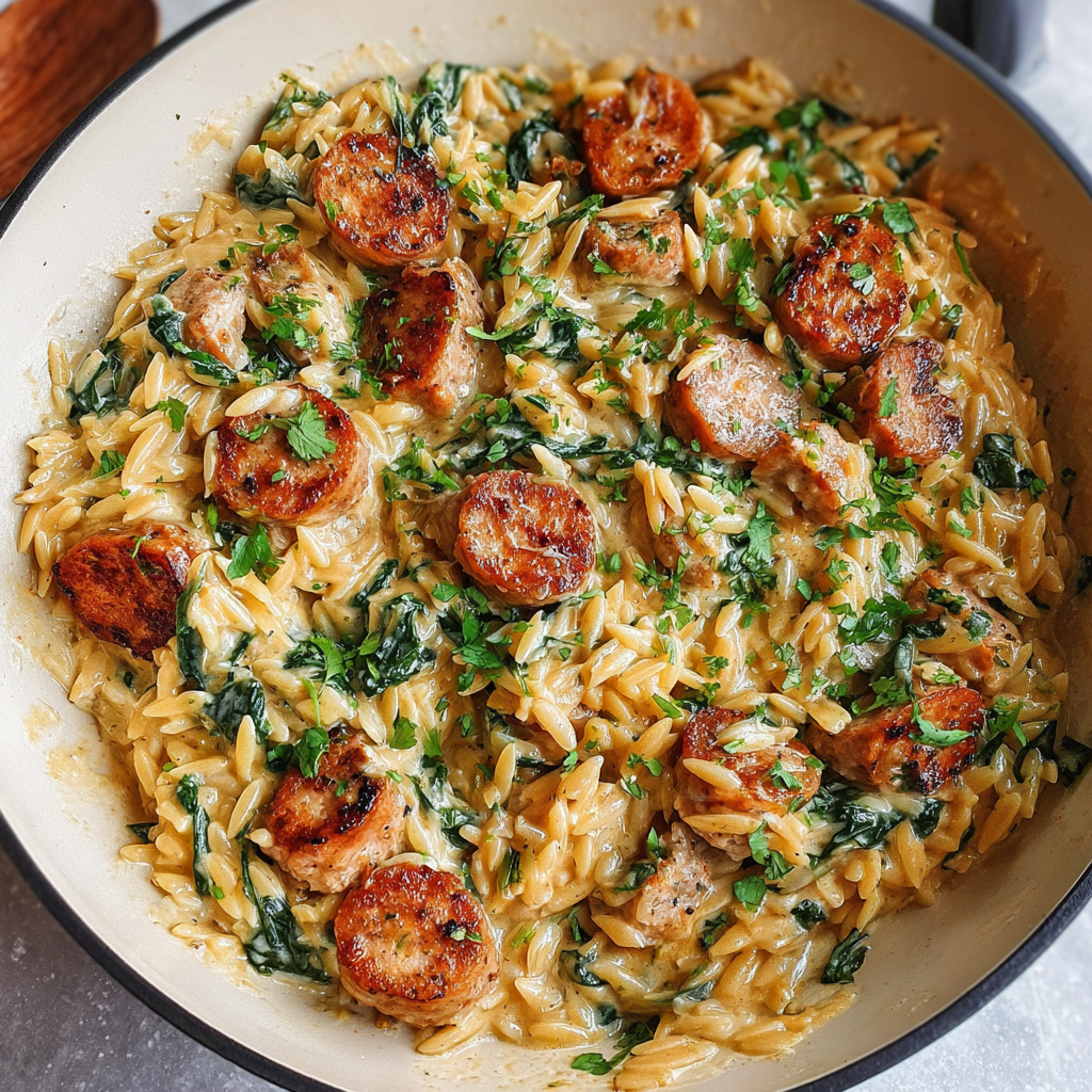 Welcome to a Creamy Chicken Sausage Orzo Delight!