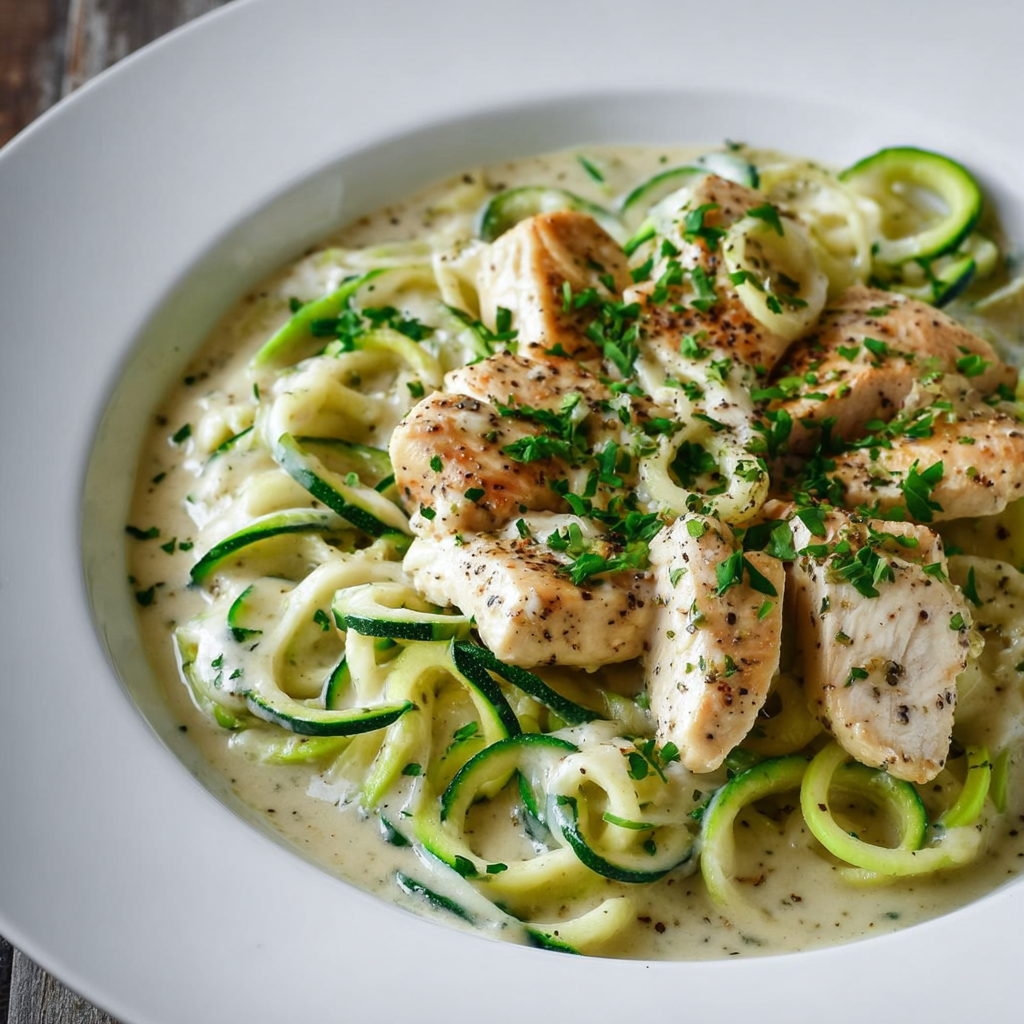 Let’s talk about what makes this creamy dish not just delicious, but also a bit healthier. First off, zucchini is packed with vitamins and minerals like vitamin C, potassium, and antioxidants. Swapping traditional pasta for zucchini noodles not only reduces the carbs but also increases fiber, which is excellent for digestion. Plus, the chicken breast provides lean protein, making this meal satisfying without weighing you down. You get a hearty meal that doesn’t compromise your health goals—now that’s a win!