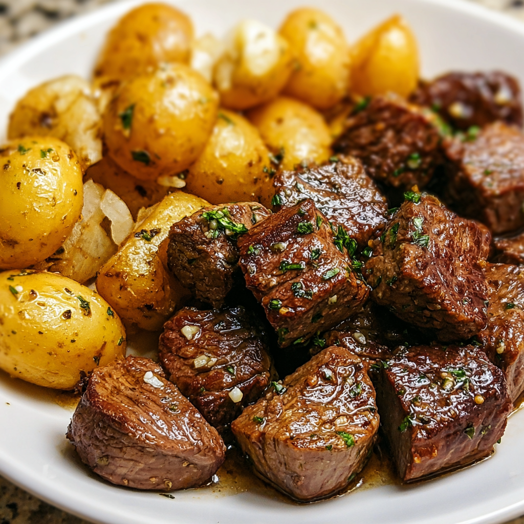 Garlic Butter Steak Bites and Potatoes Recipe