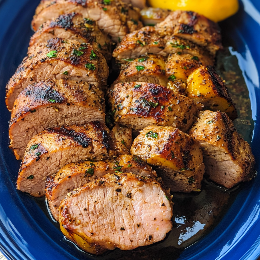 - Slice the pork tenderloin into medallions, serve warm, and if you want, garnish with parsley and lemon wedges for that extra zing!