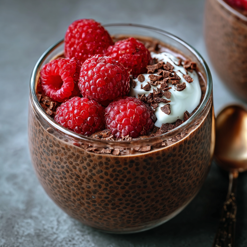- Top each serving with fresh raspberries, a dollop of whipped coconut cream or yogurt, and sprinkle with dark chocolate shavings if desired.