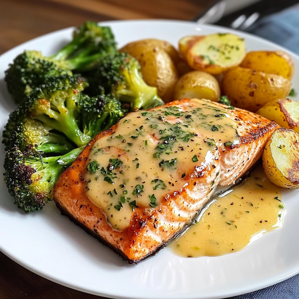 Easy, Healthy Sheet Pan Lemon Butter Salmon with Crispy Potatoes & Broccoli