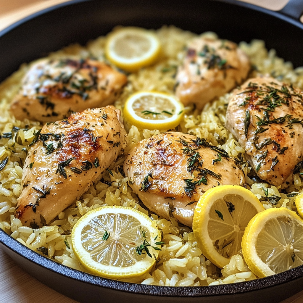 This meal isn’t just about deliciousness—it’s also a wholesome choice! Chicken is an excellent source of lean protein, which is vital for building and repairing tissues in our bodies. Meanwhile, the rice provides a good source of carbohydrates for energy, and onions and garlic bring in antioxidants with their various health benefits. The addition of lemon not only enhances the flavor, but it also adds a boost of vitamin C, great for your immune system. Fresh herbs like thyme and parsley are low in calories and add nutritional value, plus they taste amazing!