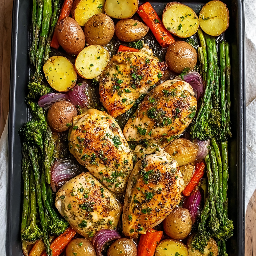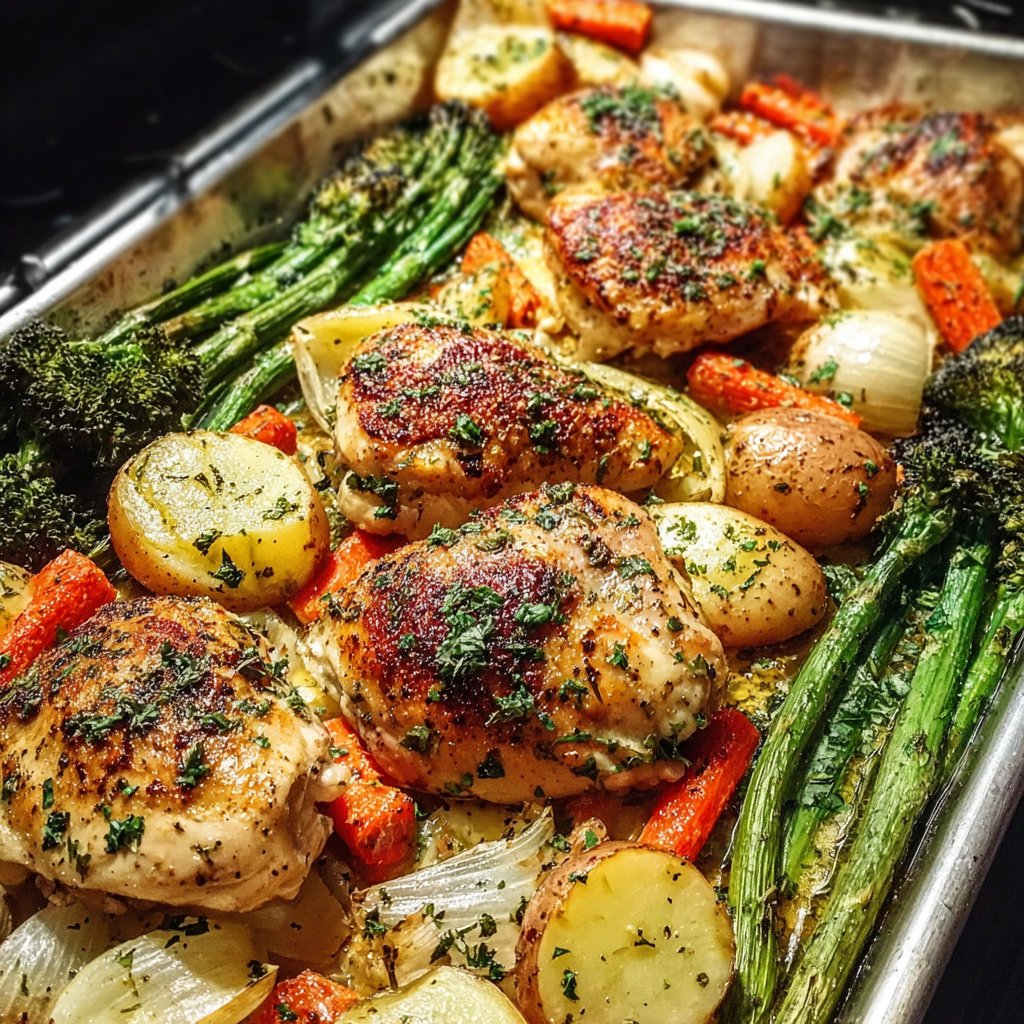 Hello there! Are you ready to dive into a delicious one-pan dinner that’s not only simple but also incredibly tasty? Today, I’m excited to share my go-to recipe for Garlic Butter Chicken Thighs with roasted veggies. It’s a meal that practically cooks itself while you enjoy the aromatic scents wafting through your kitchen. The best part? Clean-up is a breeze since everything is cooked on one sheet pan!